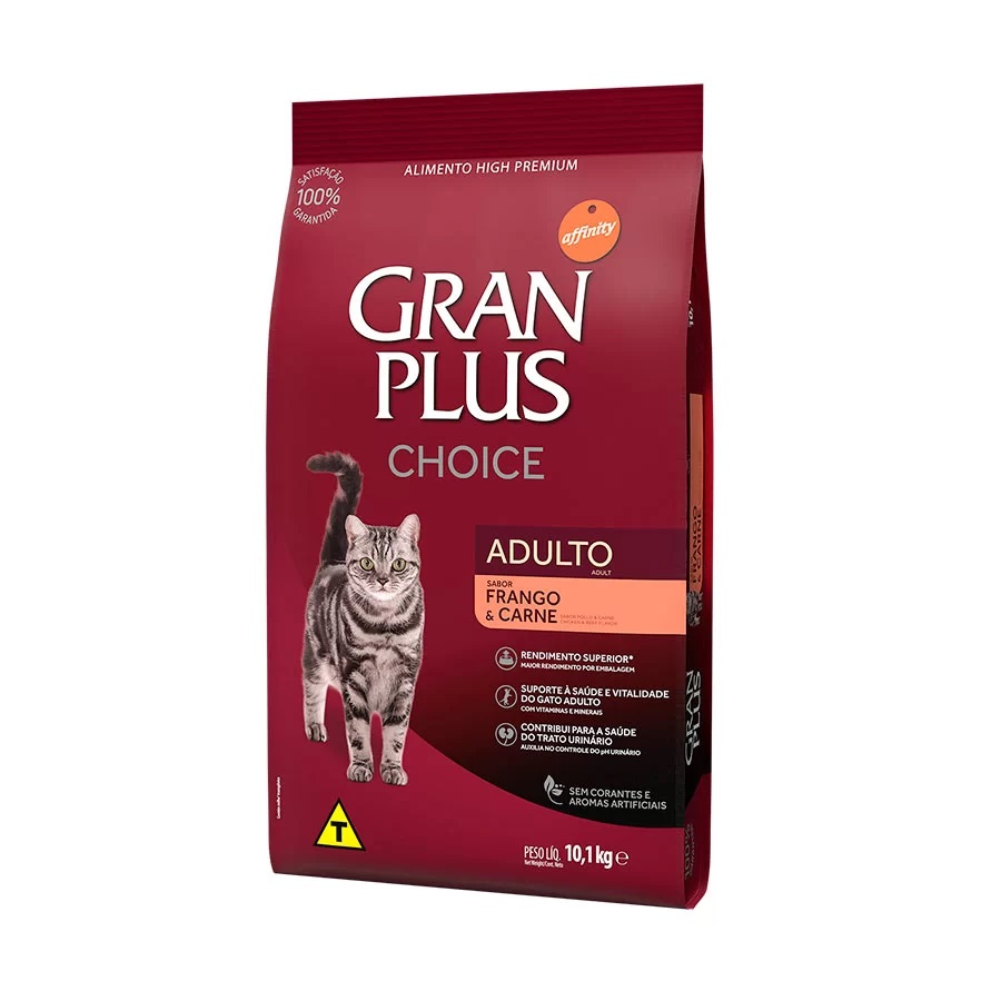 Descrição: A Gran Plus Choice Gatos Adultos Frango e Carne é o alimento ideal para o seu pet. Produzido com ingredientes nobres e ricos em vitaminas, perfeita para estimular seu animal a ter uma rotina mais ativa e saudável. O principal diferencial da Ração Gran Plus Choice Frango e Carne Gatos Adultos é a manutenção do pH do felino equilibrado. Isso contribuiu para a melhora do trato urinário, recuperação muscular e deixar o pet menos propenso a doenças.