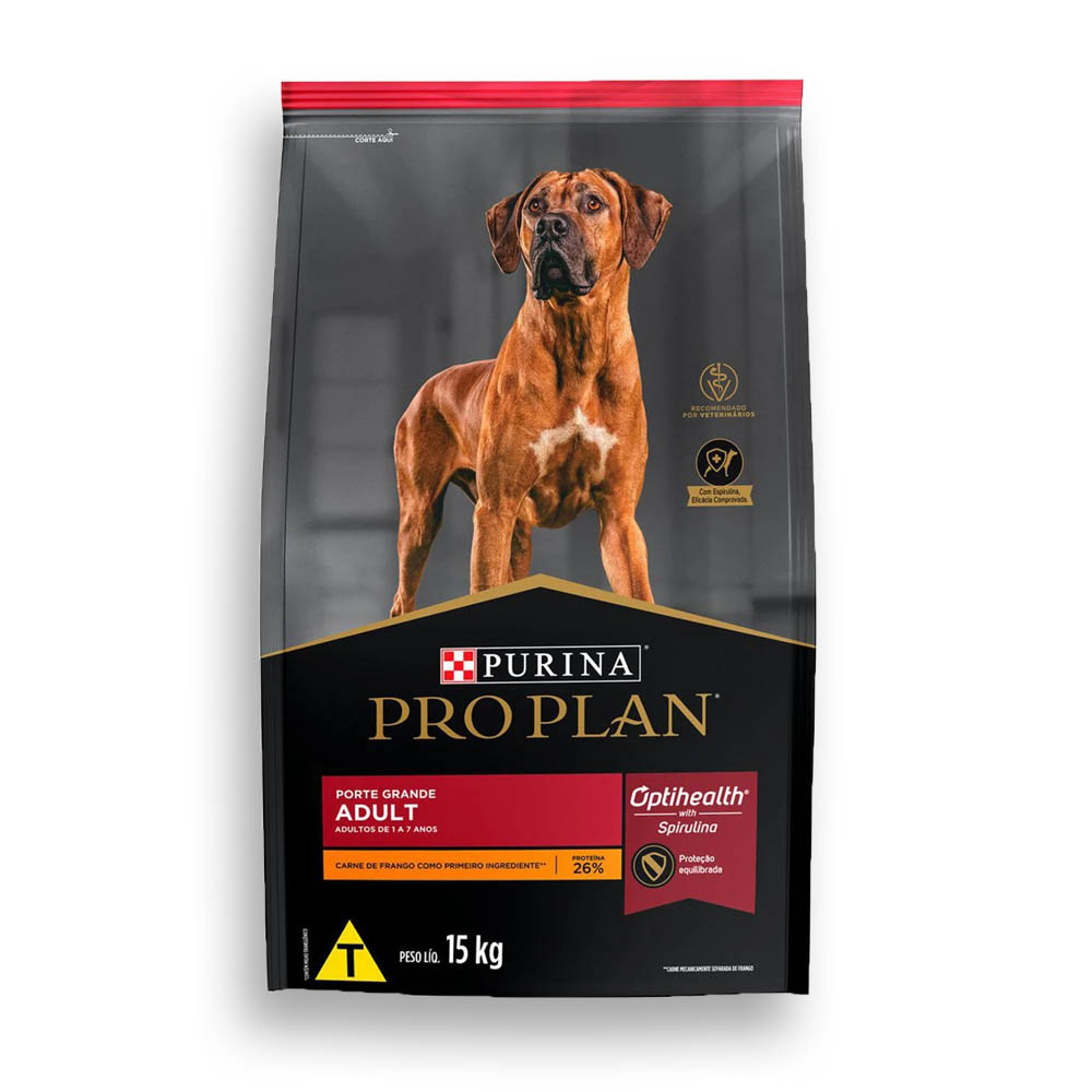 Descrição: Desenvolvido por cientistas, médicos veterinários e nutricionistas, Purina® PRO PLAN® Adult / Adulto é um alimento completo e balanceado para cães adultos (de 1 a 7 anos) de porte grande e gigante (de 25 a 70kg). Com exclusiva Tecnologia OPTIHEALTH®, uma combinação de nutrientes que inclui espirulina, uma microalga natural com propriedades benéficas que contribui para a imunidade e a saúde geral dos cães. Eficácia comprovada.